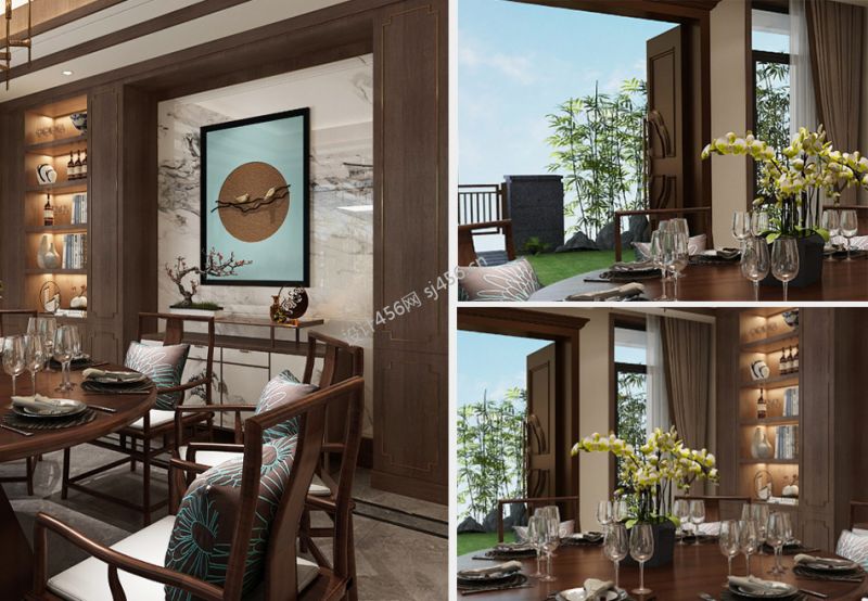 云山长麓161平新中式风格全案四居室设计装修案例风效果图