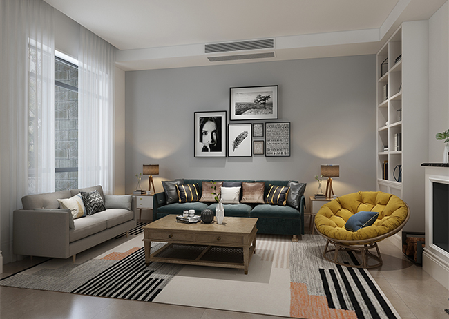 重庆别墅装修,一般来说,与客厅相连的过渡空间,面积都不会太大,重庆装修设计可以将其设计为一种辅助空间,若是摆上一把躺椅、一盏台灯,便是一个阅读空间等等,或者设计一个储物柜作为隔断,充当客厅的补充收纳空间。