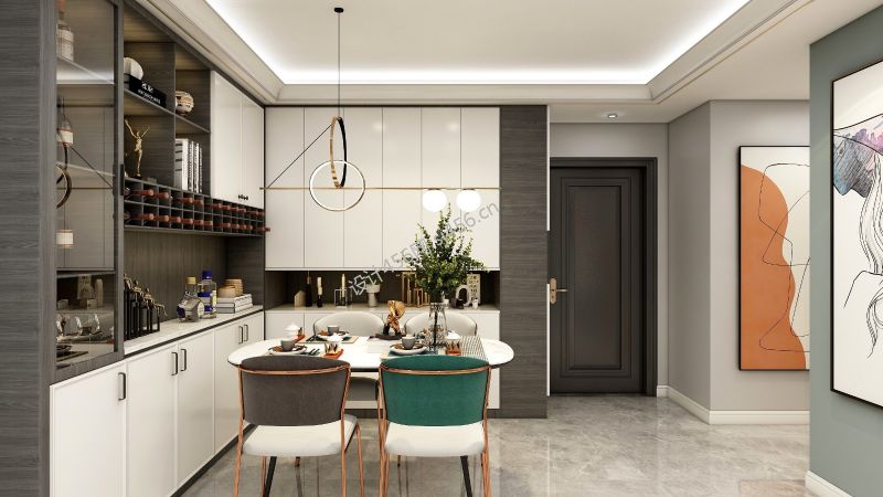 99平米现代简约三居室餐厅吊顶装修效果图