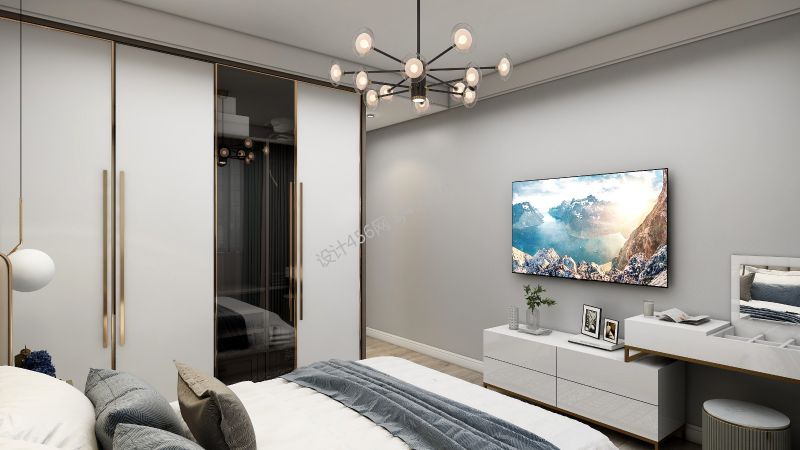 99平米现代简约三居室卧室电视墙装修效果图