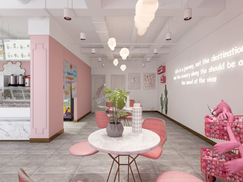 重庆家宝装饰 80平米现代粉色系奶茶店装修案例