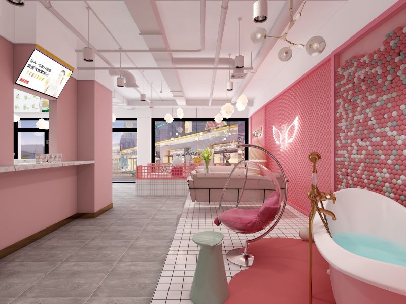80平米现代粉色系奶茶店装修案例风效果图