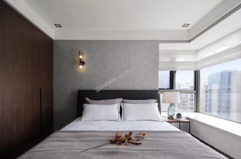 120平米现代简约三居室卧室背景墙装修效果图