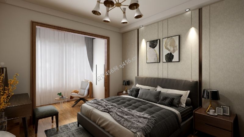 龙湖春江天镜110平米现代简约三居室装修案例风效果图