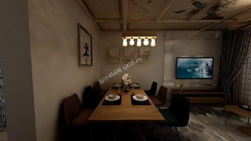 春风与湖102平米新中式风格三居室装修案例风效果图