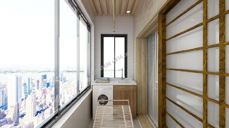 85平米日式简约二居室阳台洗衣机柜装修效果图