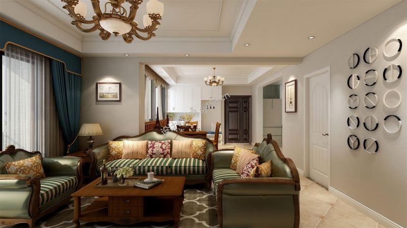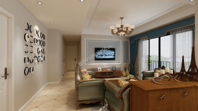 蓝光悦江府130㎡美式风格三居室装修案例风效果图