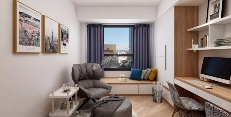财信城市国际106㎡现代简约三居室装修案例风效果图