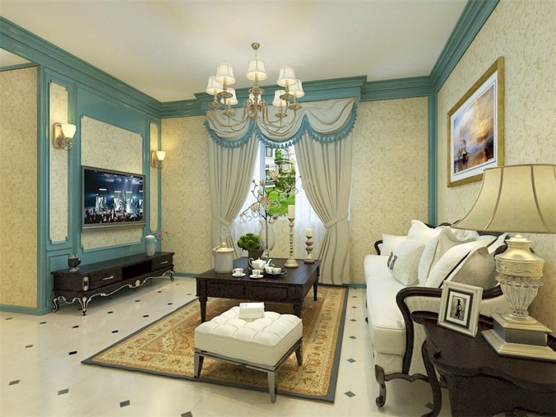 鲁能·中交漫山三居90平美式风格装修案例风效果图