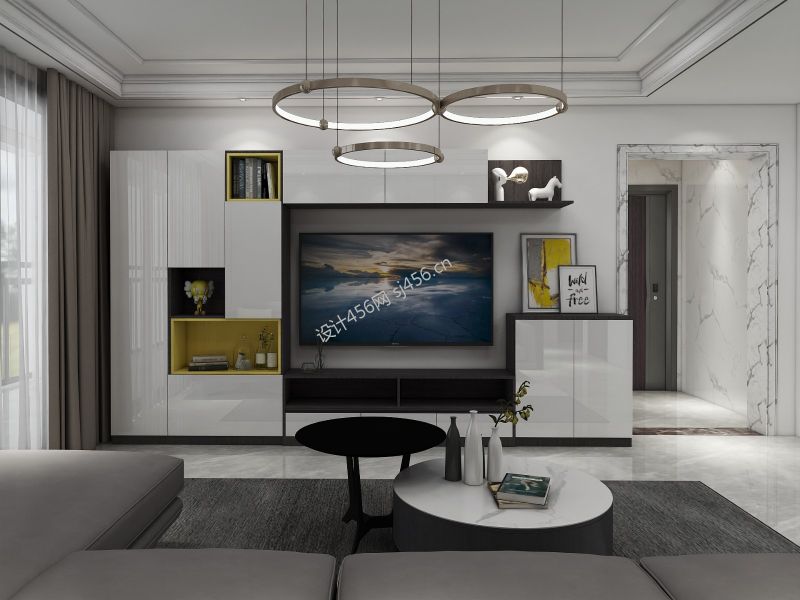 110平现代简约三室两厅客厅吊顶装修设计图片