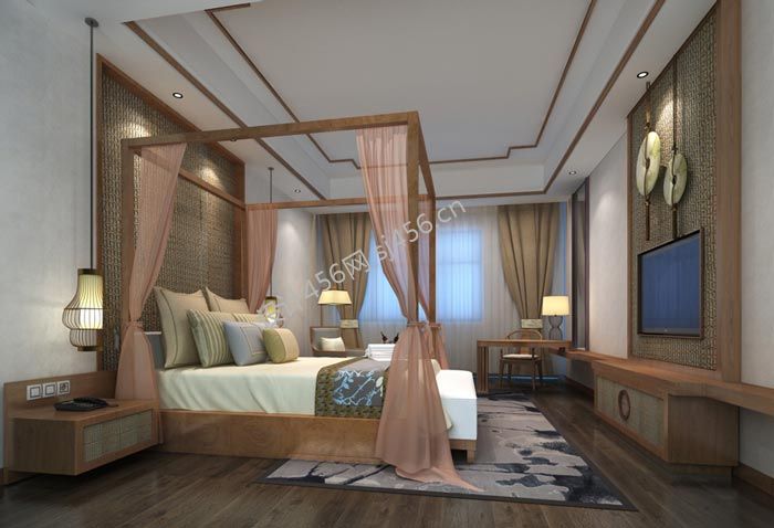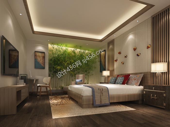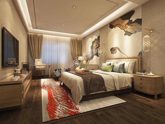 500平米现代精品酒店客房背景墙装修效果图