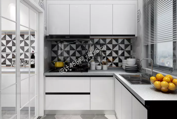 99㎡现代简约风三居室厨房橱柜装修效果图