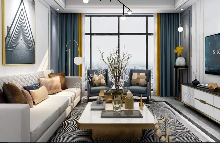 凤凰湾繁华里116㎡现代轻奢风三居室装修案例风效果图