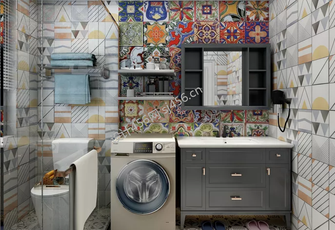 99㎡现代简约风三居室卫生间洗漱台装修效果图