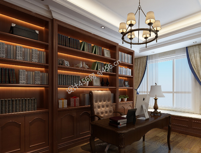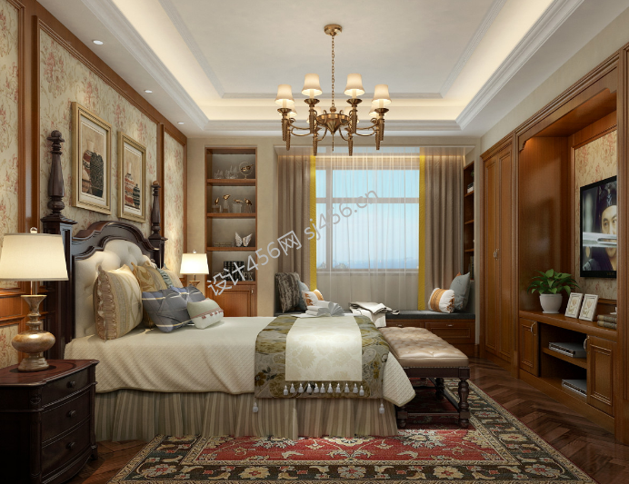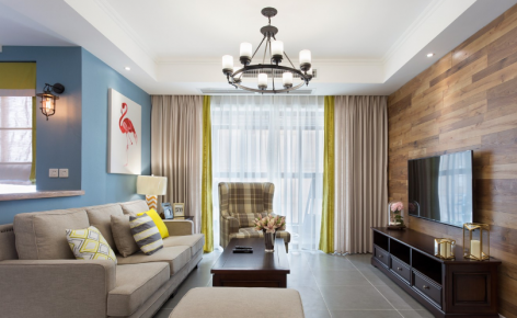 富力院士廷99㎡美式田园三居室装修案例风效果图