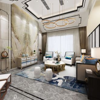 中国铁建·西派城145㎡新中式风四居室装修案例风效果图