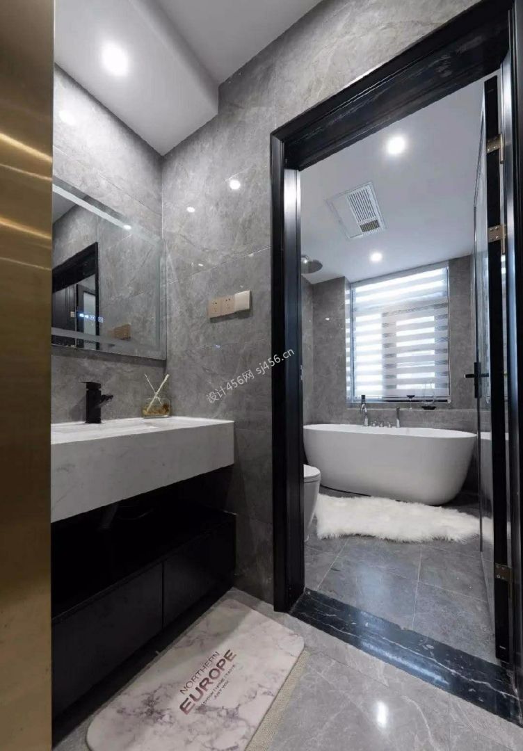 106平米现代简约三居室卫生间洗漱台装修效果图