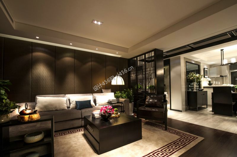 龙湖听蓝湾别墅500平新中式风格装修案例风效果图