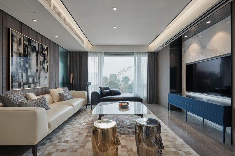 佳兆业滨江新城123平米现代简约三居室装修案例风效果图