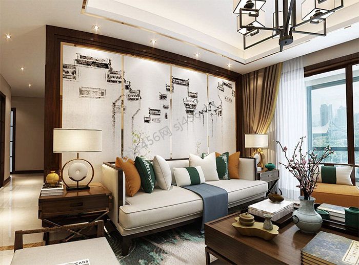 龙湖好望山三居103平新中式风格装修案例风效果图