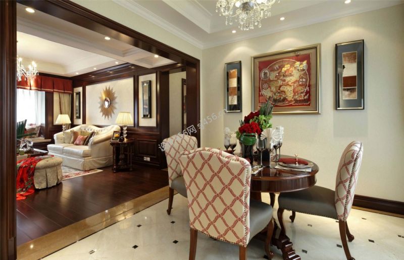 江鸿枫侨郡一期122平三居欧式风格装修案例风效果图