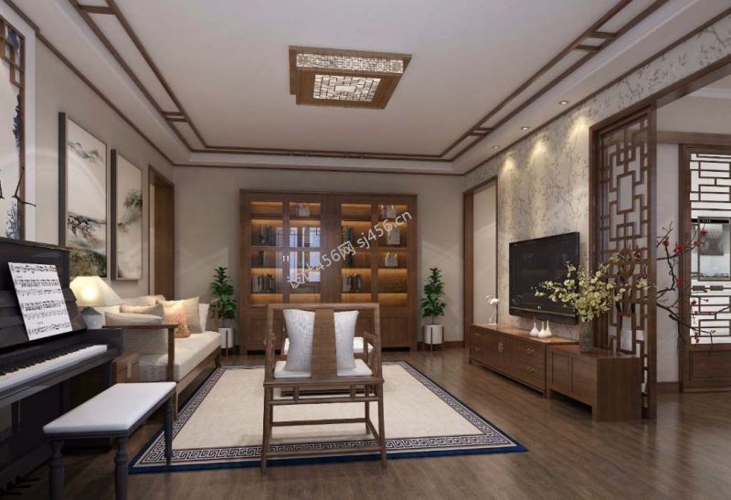 协信城立方复式135平新中式风格装修案例风效果图