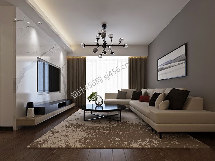 鹏润悦秀御江府现代风格109平三居室装修效果图风效果图
