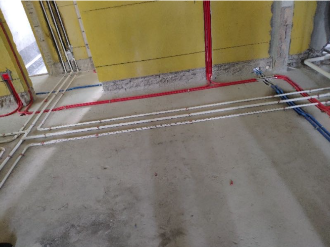 1、在施工过程中,尽量减少墙内管体不必要的接头,外接龙头、马桶、水盆处就没办法了。将所有的管路连接接头的罗牙用麻丝和白漆裹起来,上紧,按照横平竖直分布到位,如遇有地面管路发生交叉时,次路管必须安装过桥在主管道下面,使整体水管分布保持在一个水平线上。
