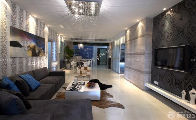 现代客厅液体墙纸装修效果图片