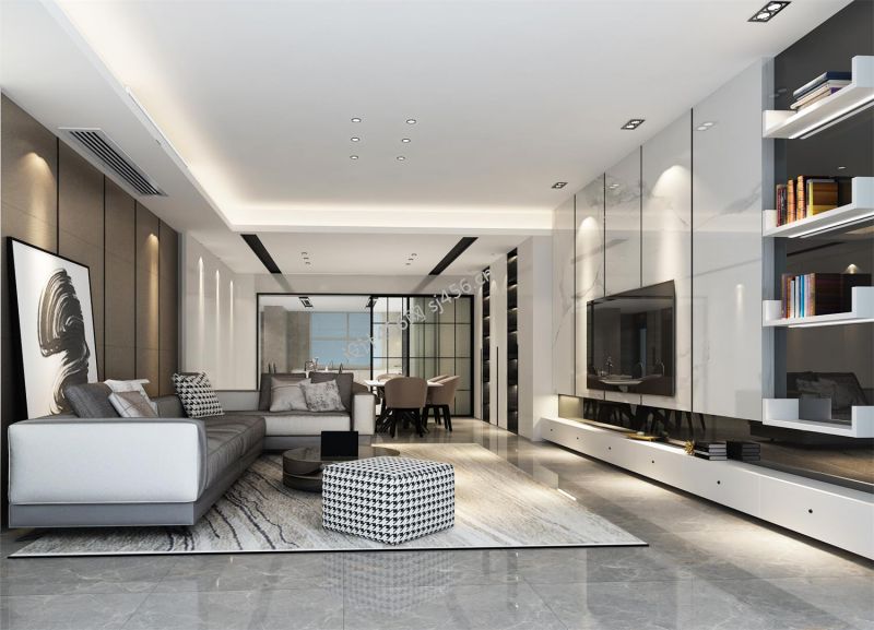 恒大优活城120平米现代简约三居室装修案例风效果图