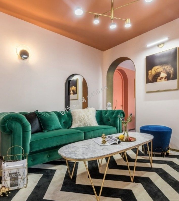混搭风格69平米一居室客厅地毯装饰装修设计图片