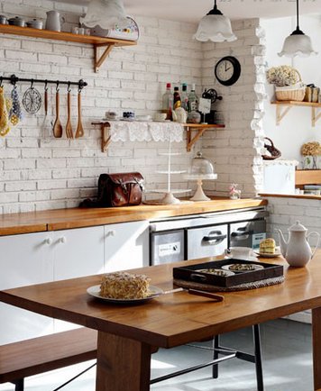 利用墙面的嵌入式收纳将餐具和厨房用品都归置在一起,尽量减少料理台面的存放利用率,整洁的环境也能让你的厨房看起来更大。