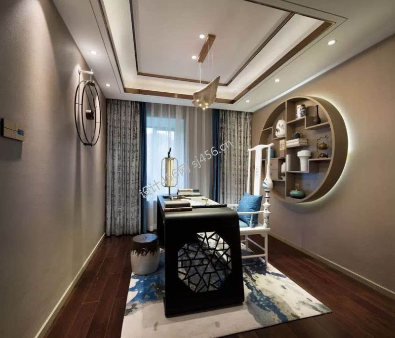 龙兴国际生态新城新中式风格97平米三室两厅装修案例风效果图