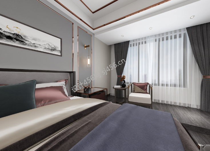 龙湖紫云赋135平新中式风格装修案例风效果图