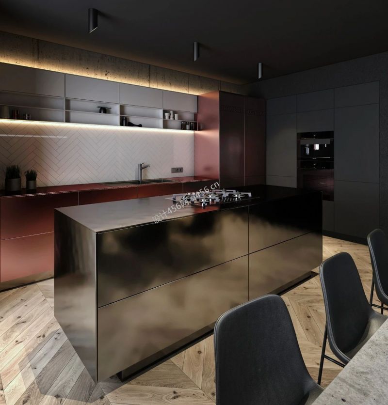 88平轻奢风格厨房装修效果图片