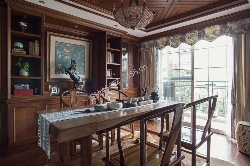 三居室118方美式田园风格书房吊顶设计图