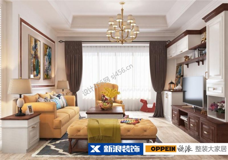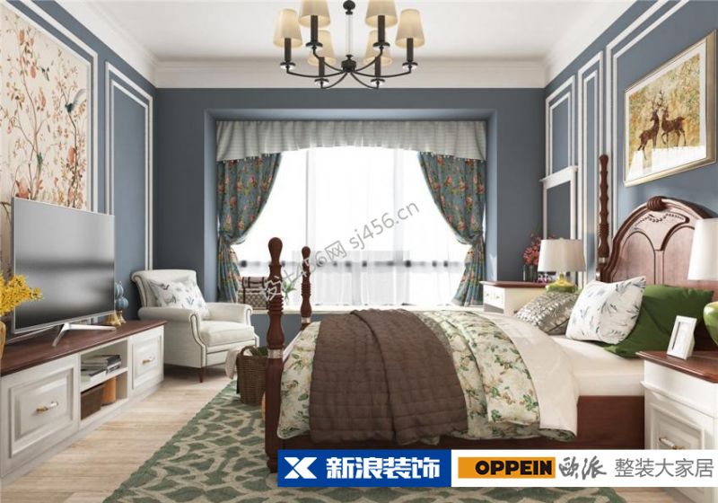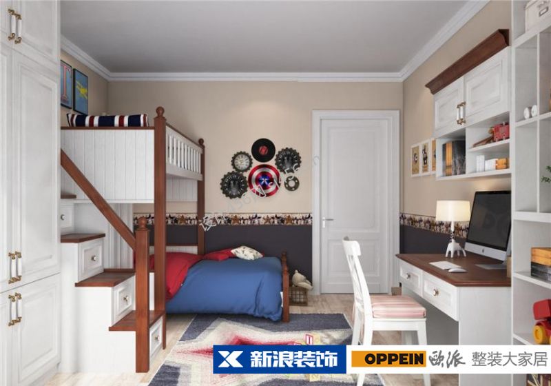 美式田园风格100平米三居儿童房背景墙装修效果图
