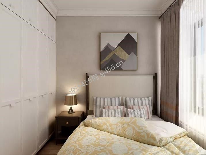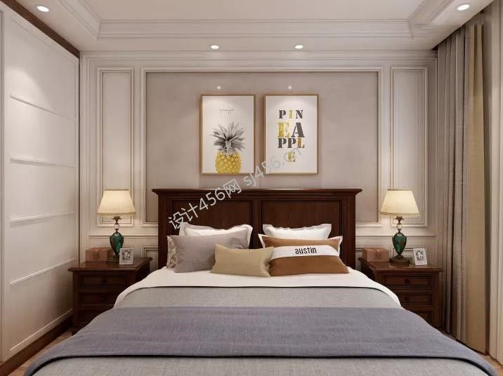 115㎡三居室美式风格卧室床头柜装修效果图