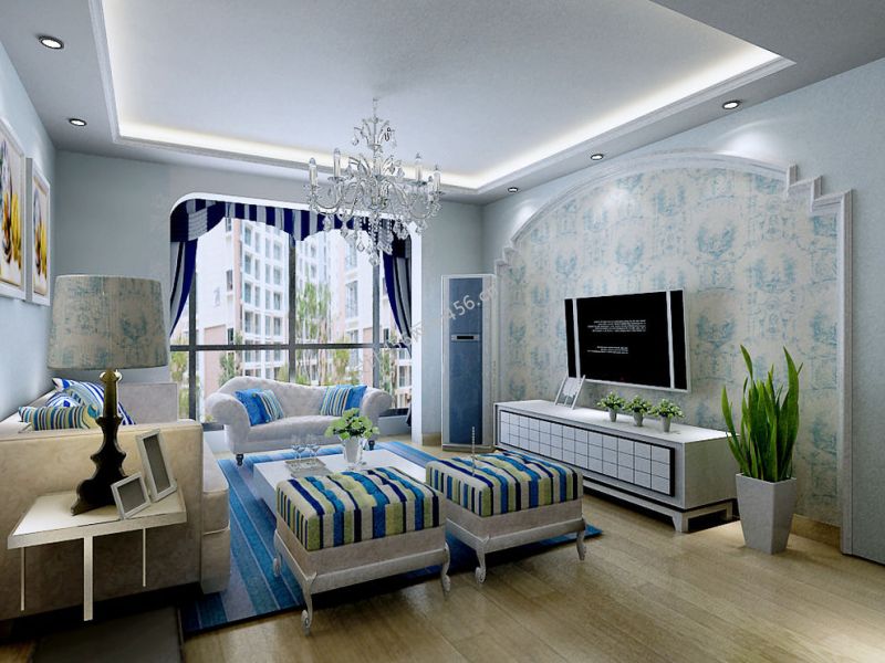 丽江明珠86平米地中海风格二居室装修案例风效果图