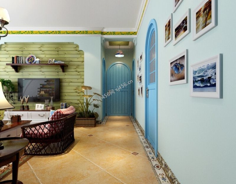 一品南庭108平米地中海风格三居室装修案例风效果图