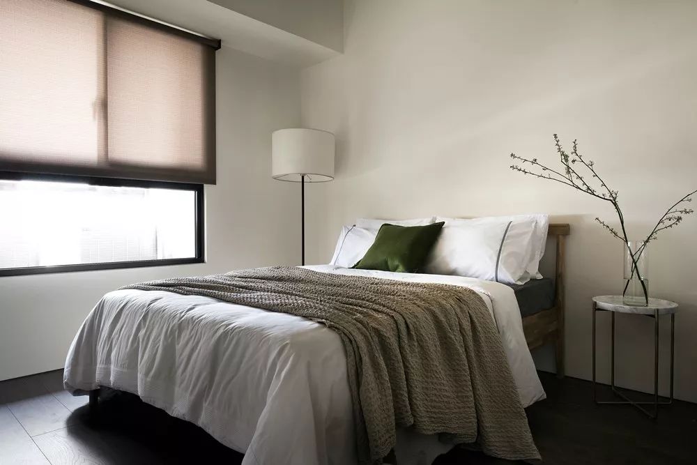 次卧用简单的白墙作为基础,木质床体搭配柔和舒适的被铺,配以充满生命力的枝条,置身其中能感受到源源不断的宁静平和。