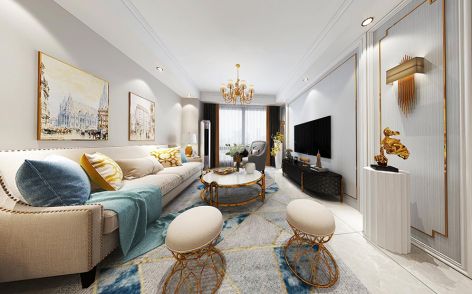 中迪广场108平米三居室轻奢风格装修案例风效果图