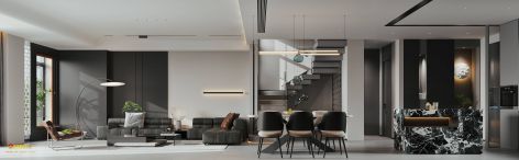 天誉誉府343平别墅现代轻奢风格装修案例风效果图