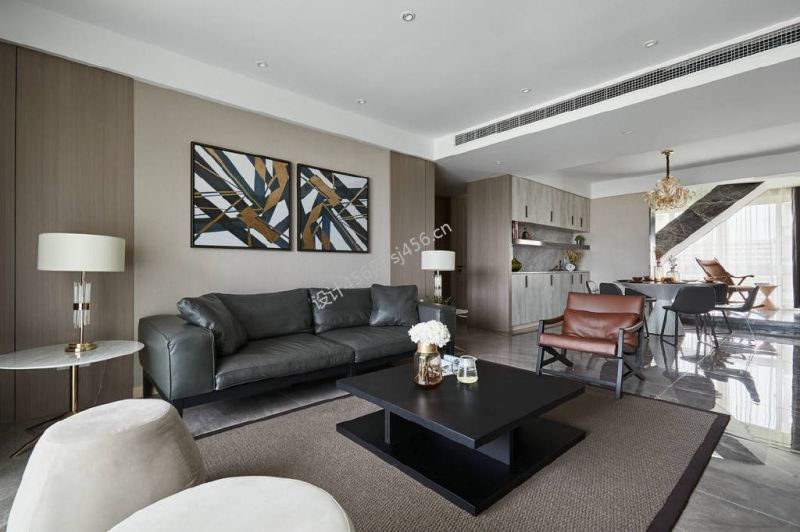110平三居室现代风格客厅沙发背景墙装修效果图