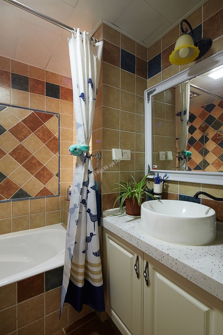 金色世界湾复古美式风145平米三室两厅装修案例风效果图