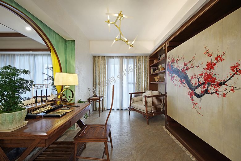 金桥花园135平米新中式风格三居室装修案例风效果图