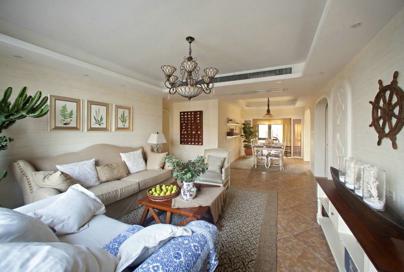 卓越蔚蓝岸地中海风格98平米三室两厅装修案例