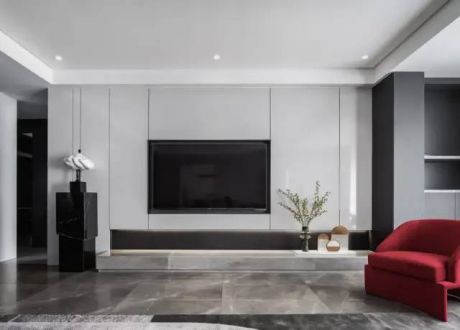 125平米极简风格三室两厅客厅电视墙装修图片