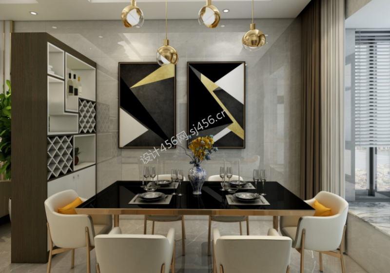 140㎡四居室现代简约风格餐厅背景墙装修图片
