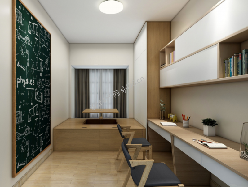 140㎡四居室现代简约风格书房榻榻米设计案例